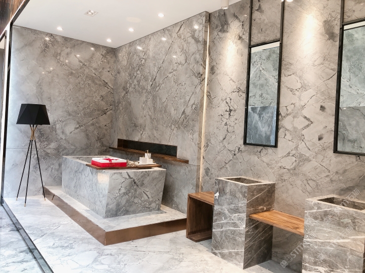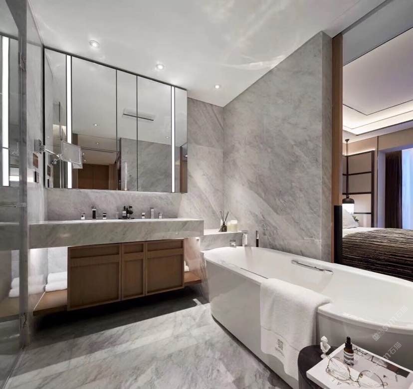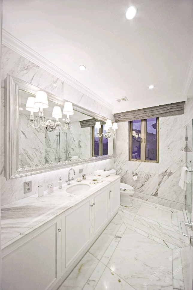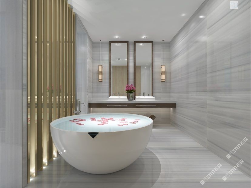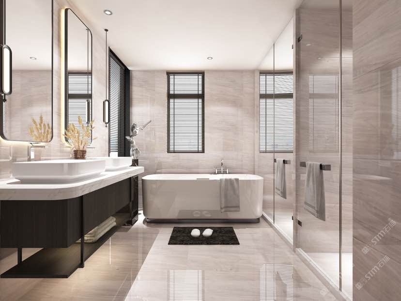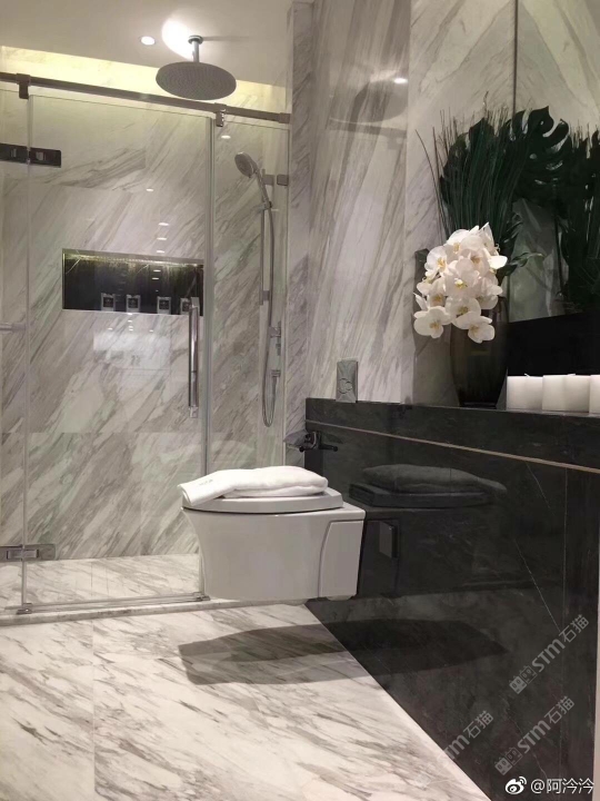 以大理石的天然肌理,雕琢衛(wèi)浴的奢雅格調(diào)。維納斯白的純凈底色,交織著金灰紋路的藝術(shù)韻律,從墻面延伸至地面,每一處鋪貼都是對(duì)精致生活的注解。在這一方空間里,大理石的冷冽質(zhì)感與空間的溫馨氛圍碰撞,既顯高級(jí)感,又藏?zé)熁饸猓屝l(wèi)浴時(shí)光成為一場(chǎng)視覺(jué)與感官的雙重奢享。